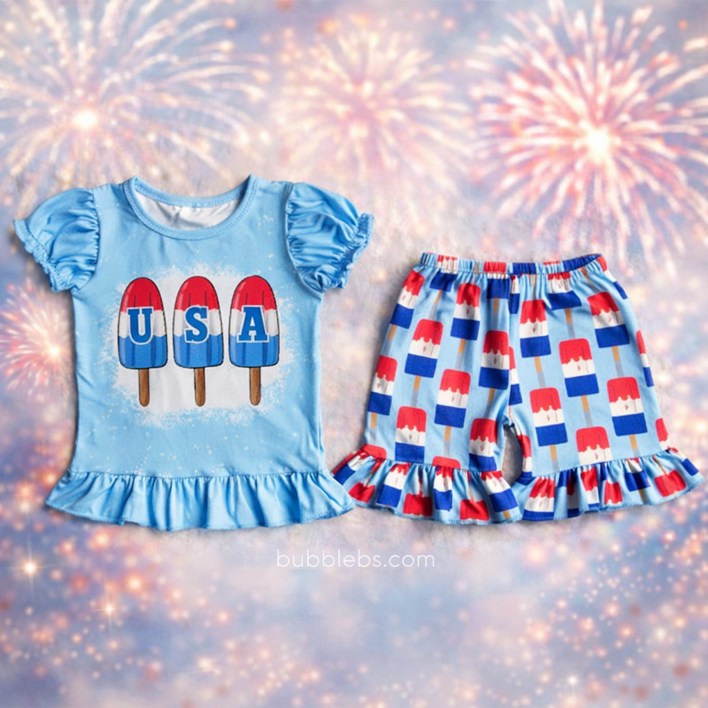 4th of July Baby Girls Boys USA Sibling Popsicle Shorts Clothes Sets