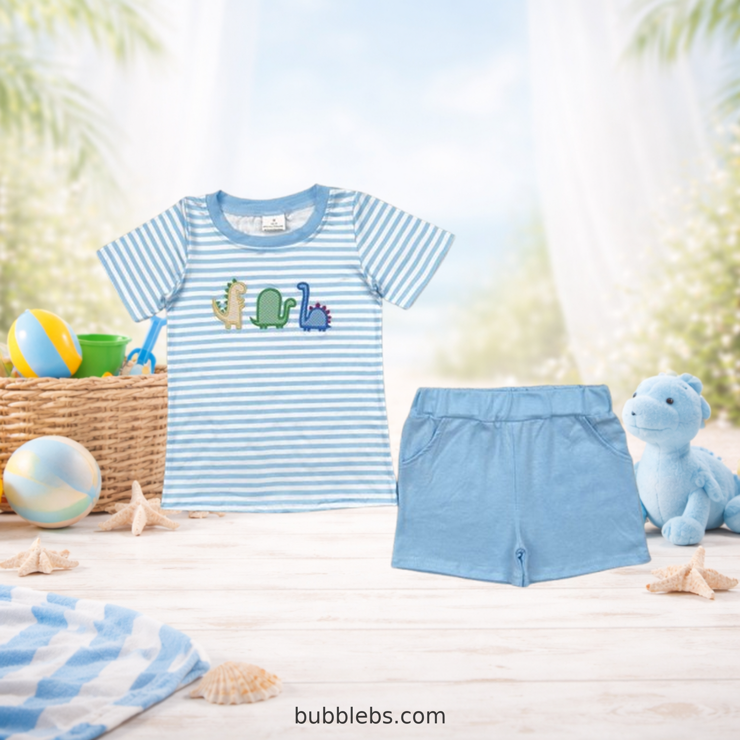 Adorable coordinated outfits featuring playful duck designs in soft blue tones, perfect...